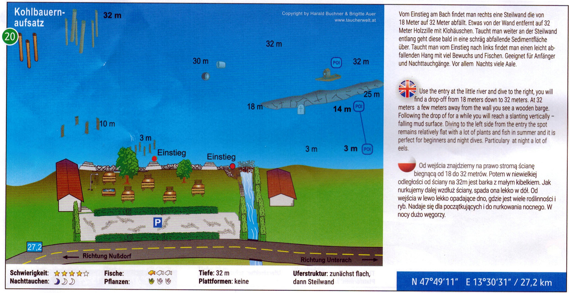 Dzięki specjalnie wydanej broszurze dla nurków można dowiedzieć się co proponuje nam każde miejsce nurkowe nad jeziorem, oraz jak je odnaleźć, dzięki kilometrówkom przy drodze. Broszurę tą można pobrać w każdym centrum nurkowym przy Ateersee.