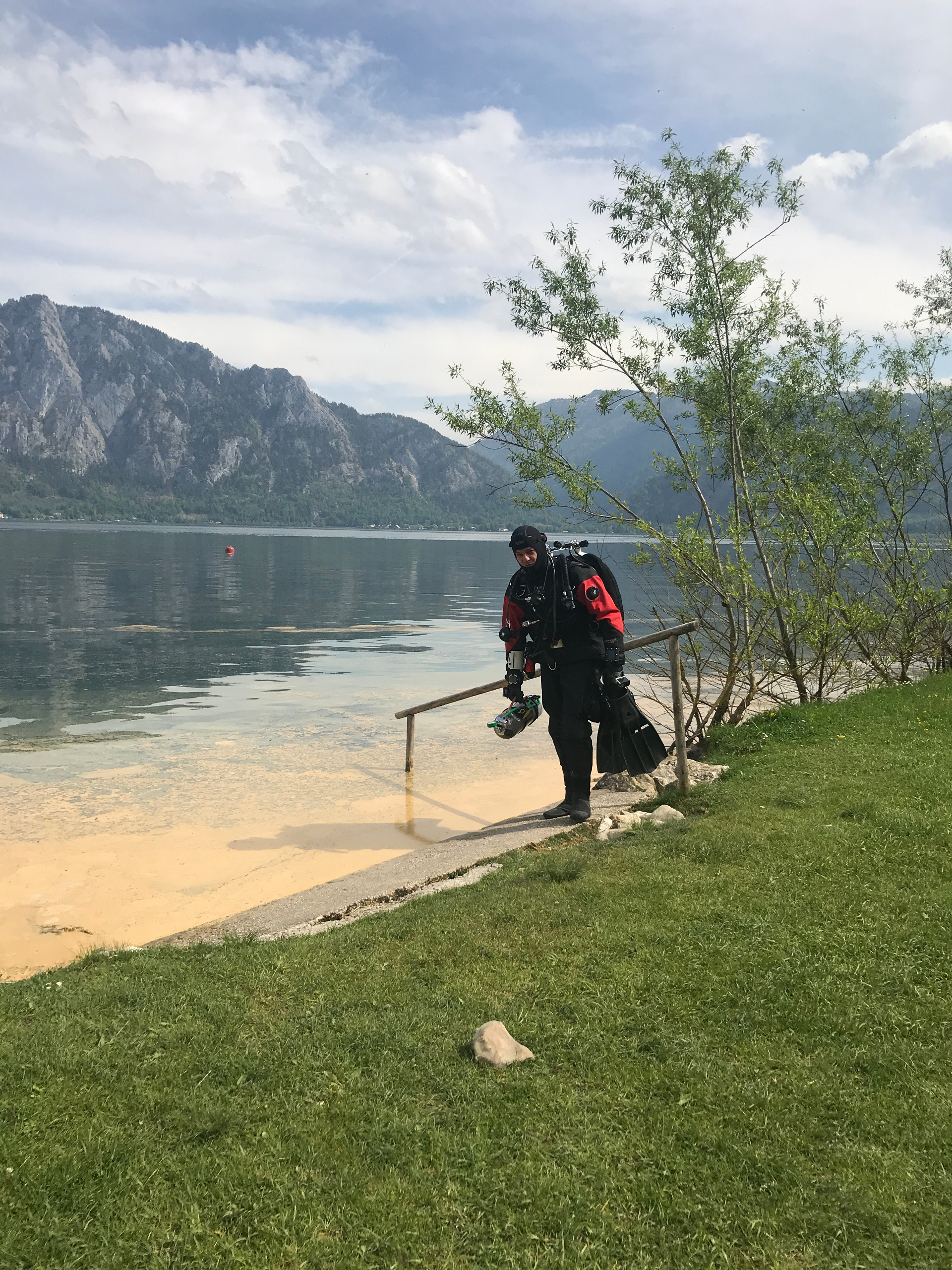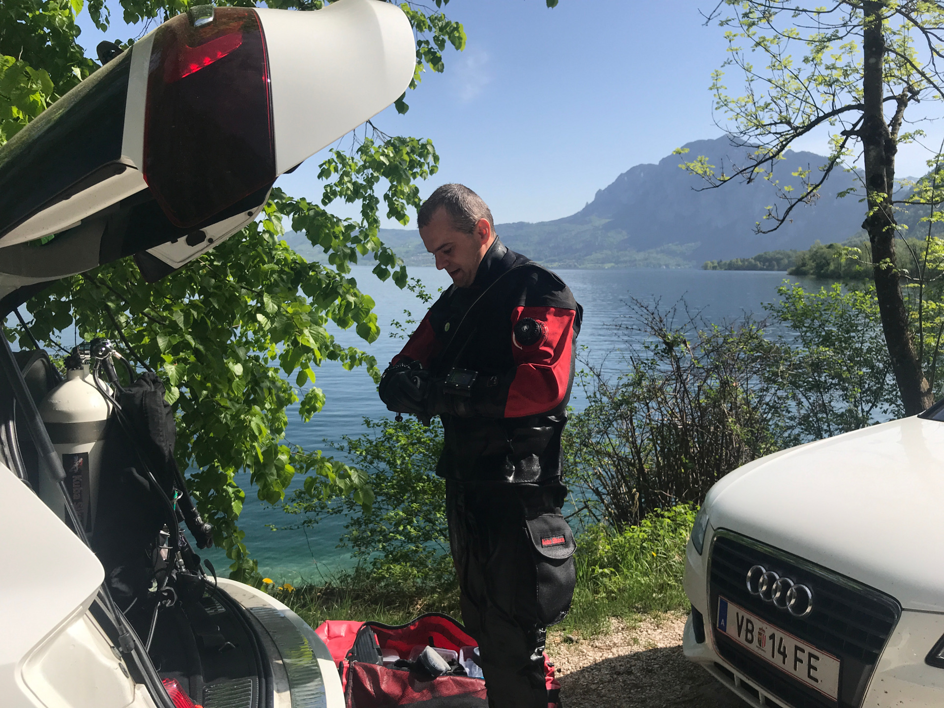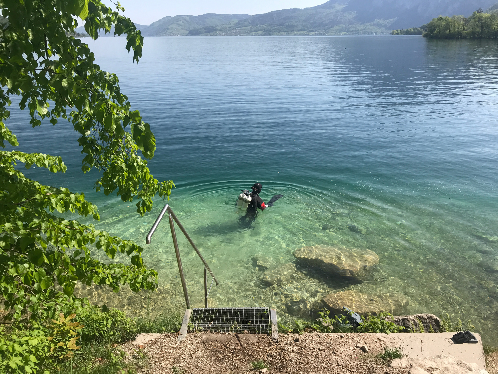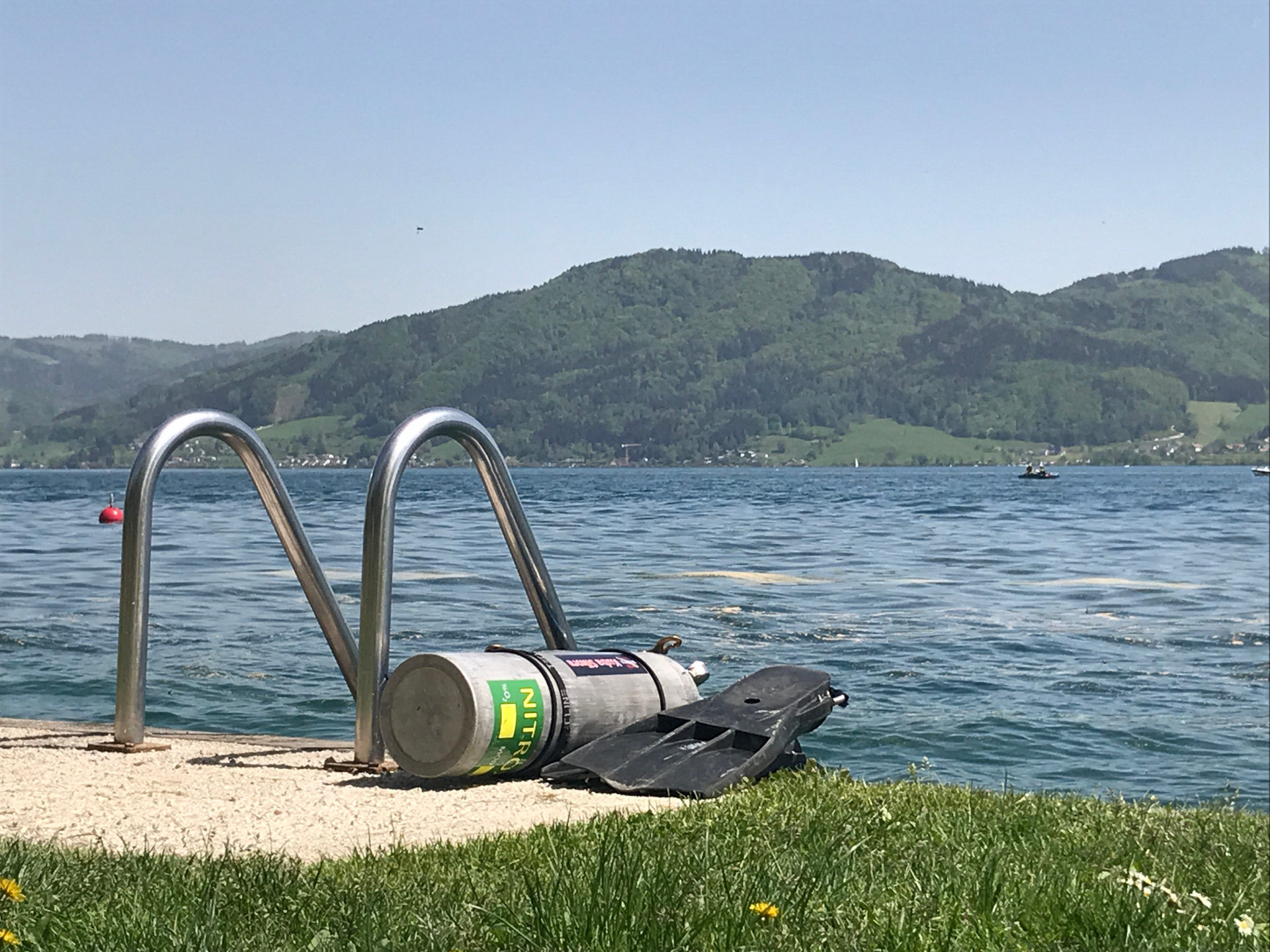 Jeśli chodzi o nabijanie butli obsługę sprzętową oraz ewentualne zakupy sprzętu nurkowego przy Attersee, jest kilka baz, które to oferują. Ja wybrałem UNDERPRSSEURE, głównie ze względu na: